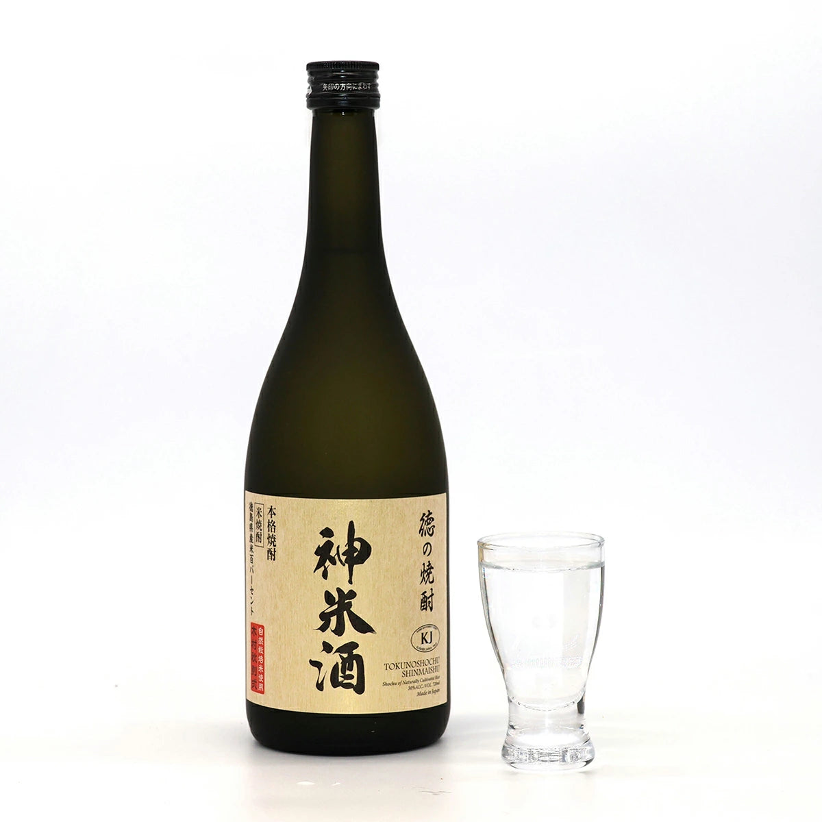 世界でも認められた安全の証【コーシャ認定取得】のこだわり米焼酎「徳の焼酎 神米酒」。日本一の清流といわれるほどきれいな清流として知られる徳島県吉野川の流域にあるオーガニックガーデンの田んぼで作った無農薬・無肥料のお米で造られています。